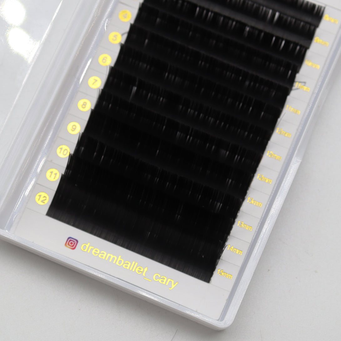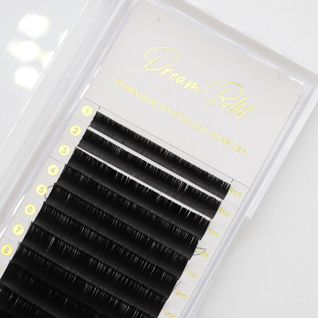 An amazing option for classic lash sets to create a more dramatic, bolder look with less weight. They are specially designed with a flat shape to provide black finish that weighs about half as much as a traditional round classic fiber. Flat lashes are more flexible than classic lashes of the same "diameter" or "thickness," and create a uniquely bold classic look.