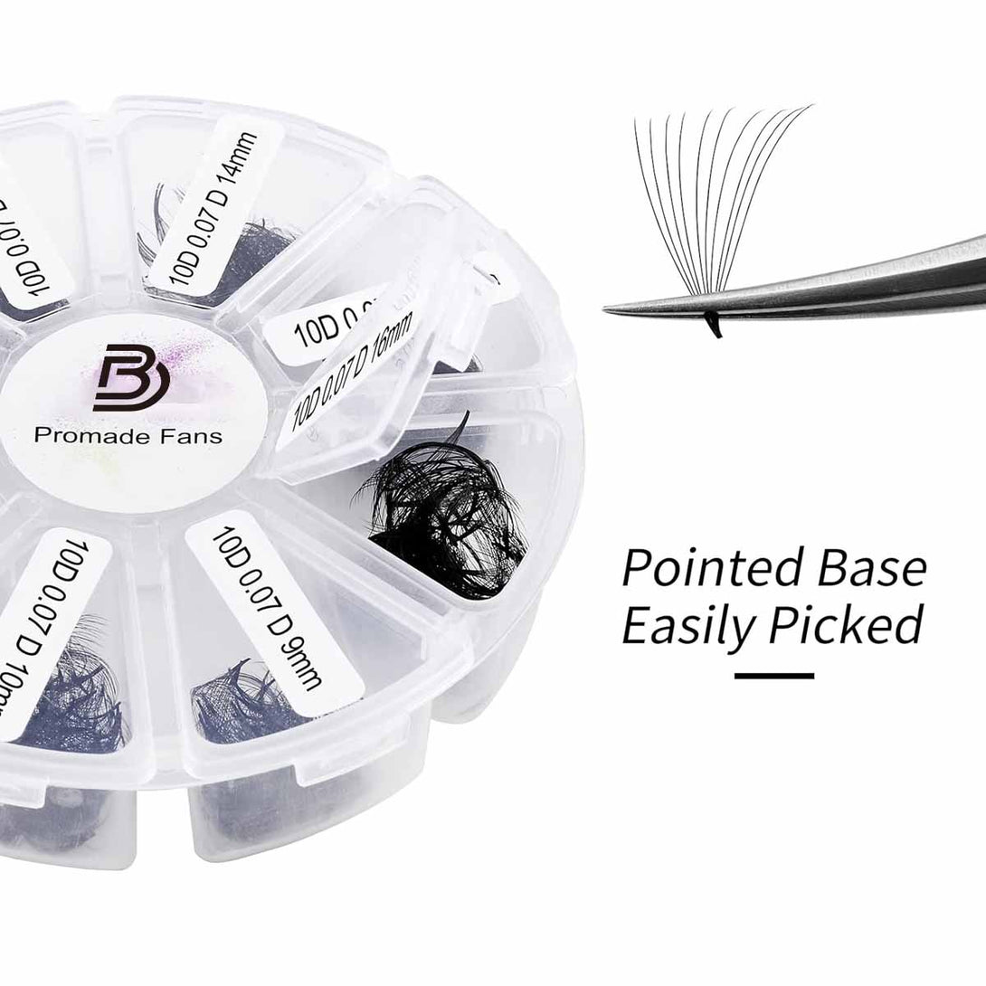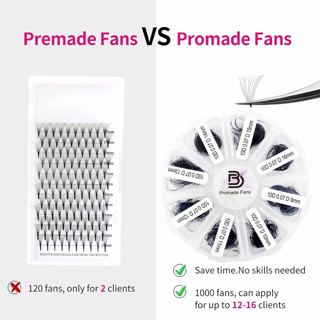 - Save Your Time: Get the fluffiest volume set done in a short amount of time with our premade fans eyelash extensions. A PROMADE finished set is light, fluffy, and easy to blend with natural lashes.