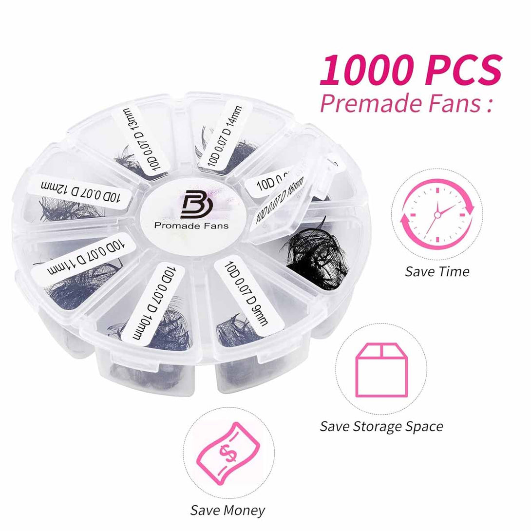 - Budget-friendly Choice: Our loose promade fans come in packages of 1000 fans(+-2%) , 8.3 times the amount of other 12 rows premade lash fans trays. promade fans are the most budget-friendly solution.