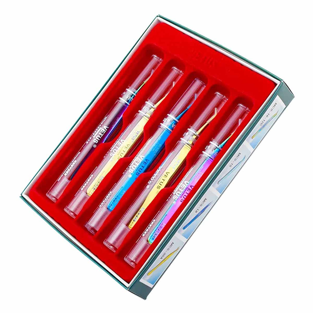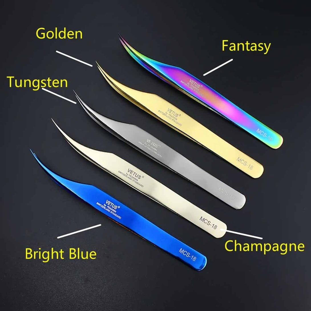 High Quality Closure Super Precision Eyelash Tweezer MCS VETUS Tweezer Eyelashes Extension Golden Makeup Tweezers