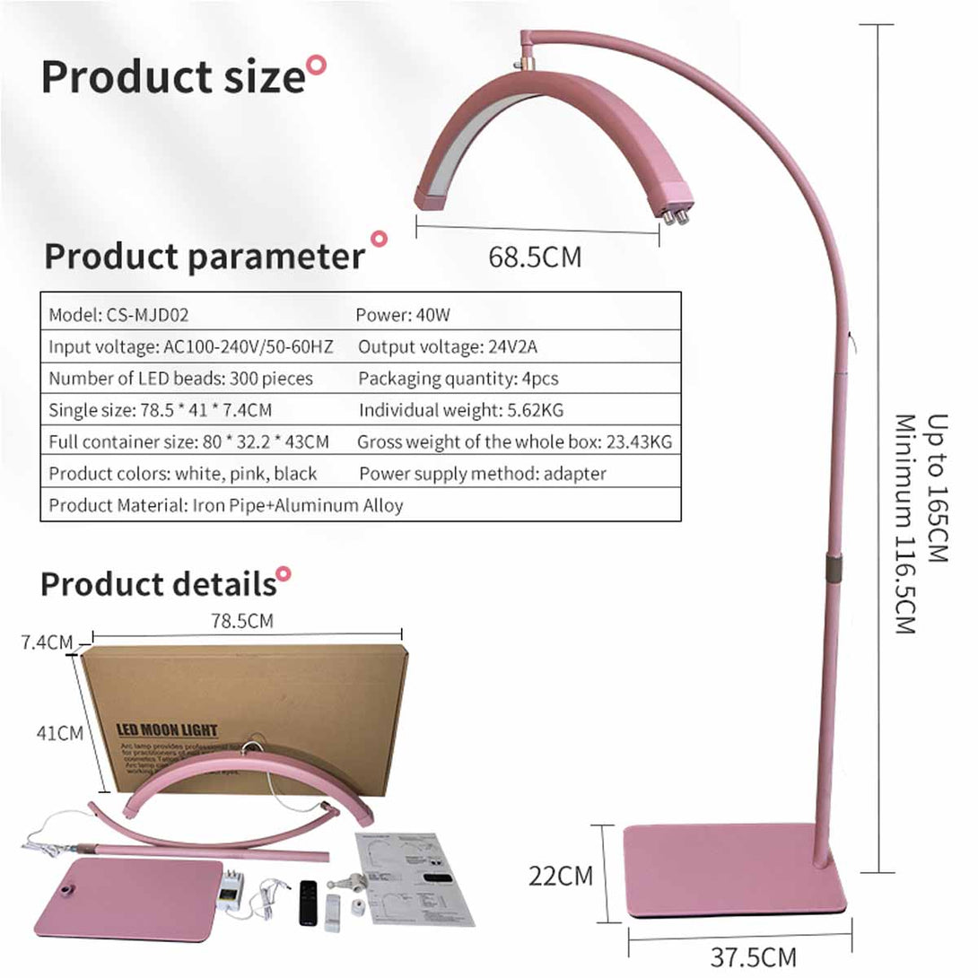 Professional Beauty Floor Lamps Moon Light Half Moon Lamp for Eyelash Extension LED Ring Light Moon Light Lamp for Lashes Tattoo